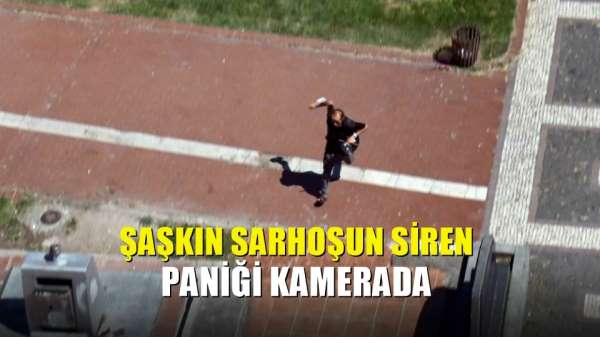 İlk başta uzaktan gelen siren sesine aldırış etmeyen sarhoş adam, 112 ambulansının siren sesinin yakından gelmesiyle birlikte heyecanlanmaya başladı. Ambulans sirenini polis sireni zanneden alkollü şahıs elindekileri çöp kutusuna atarak, yoldan geçenlere 'Çekilin' diye bağırıp hızla kaçmaya başladı. Sarhoş şahsın şaşkın hareketleri ilginç görüntüler oluşturdu.
