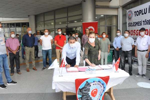 İmza töreninde konuşan Belediye-İş Sendikası İzmir 4 No'lu Şube Başkanı Ayhan Doğan, iyi bir sözleşme imzaladıklarını ifade etti. Doğan, 'Biz, belediye yönetimi ile işçi arkadaşlarımız için kurumun verebileceği en yüksek oranlarda bir sözleşmeye imza attık' dedi.