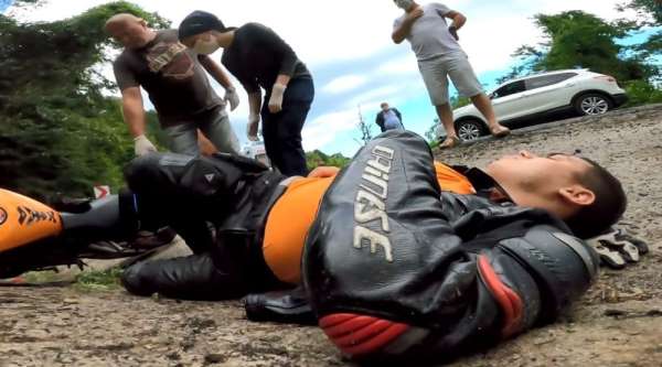 Öte yandan, motosiklet sürücüsü İsmail Öznam'ın yaptığı kaza kask kamerasına yansıdı. Kazada seyir halindeyken İsmail Öznam, köyde hayatın kalmadığını ve kimselerinde olmadığından yakınırken, bir anda motosikletin kontrolünü kaybettiği görülüyor. Motosikleti durduramayan Öznam, yön tabelasına çarpmak üzereyken su kanalına doğru hamle yaparak düştüğü görülüyor. Düştükten sonra Öznam'ın acı içerisinde yerde kaldığı ve çevreden geçen vatandaşlarında müdahale ettiği görülüyor.