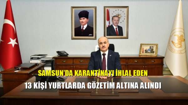 Samsun'da karantina kurallarını ihlal ettiği tespit edilen 13 kişi yurtlarda gözetim altına alındı.