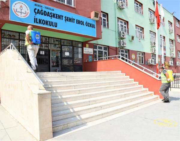 Toroslar Belediyesinden yapılan açıklamaya göre, Mersin'de artan korona virüs vakalarına karşı dezenfekte ve hijyen çalışmalarını yoğunlaştıran belediye, 21 Eylül'de yüz yüze eğitimle açılacak okullarda salgınla mücadele kapsamında dezenfeksiyon çalışması yaptı. Temizlik İşleri Müdürlüğüne bağlı iki ekip, öğrencilerin ve öğretmenlerin okullarda temas ettiği sınıf, koridor, tuvalet, lavabo ve kapı kolları gibi tüm alanların dezenfekte işlemini titizlikte gerçekleştirdi.