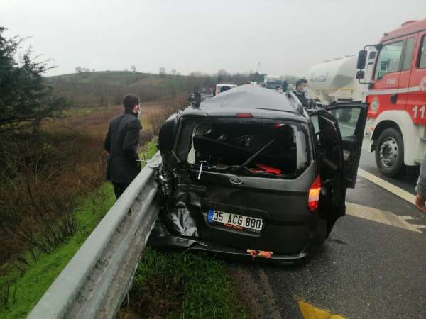 Düzce'de TEM Otoyolu üzerinde 4 aracın karıştığı zincirleme trafik kazasında 1'i ağır 2 kişi yaralandı.