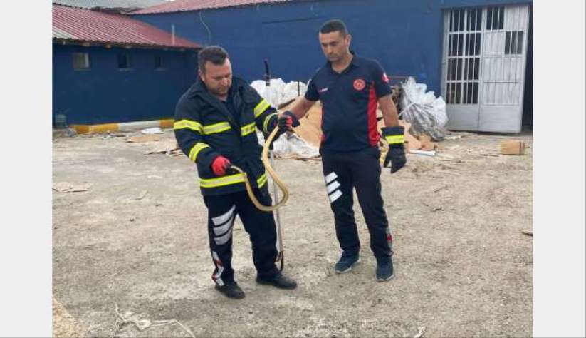 Tokat'ta bir iş yerinin deposuna yılan itfaiye ekipleri tarafından yakalanıp doğaya salındı.