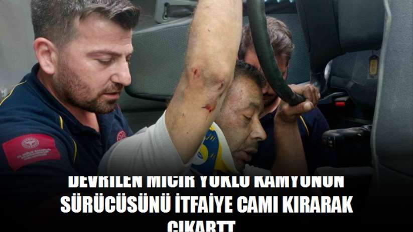Samsun'da yol ortasına devrilen mıcır yüklü kamyonun yaralanan sürücüsü araçta sıkıştı. İtfaiye erleri tarafından ön cam kırılarak çıkartılan sürücü hastaneye kaldırıldı.