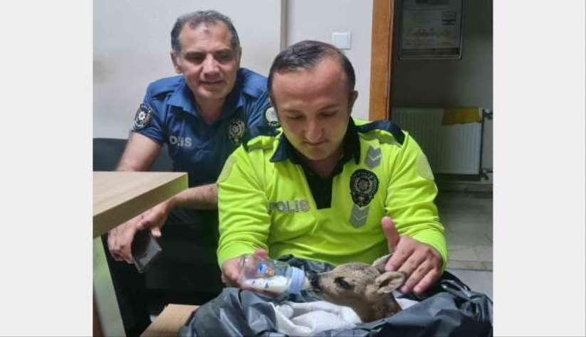 Ordu'nun İkizce ilçesinde vatandaşlar tarafından bulunan yaralı yavru karacaya polis ekipleri sahip çıktı.
