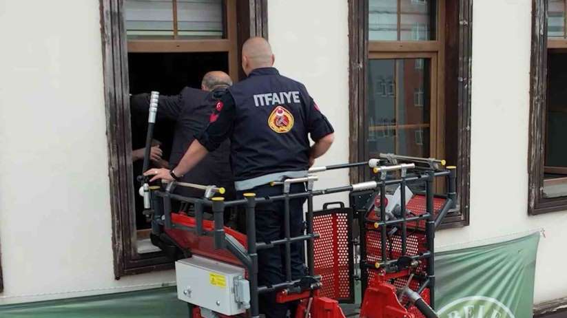Tanıtımından sonra itfaiye aracının sepetine binen Başkan Çiftçi, belediye binasında 2. kattaki camdan girdi. O anlar ise izleyenleri hem şaşırttı hem güldürdü.