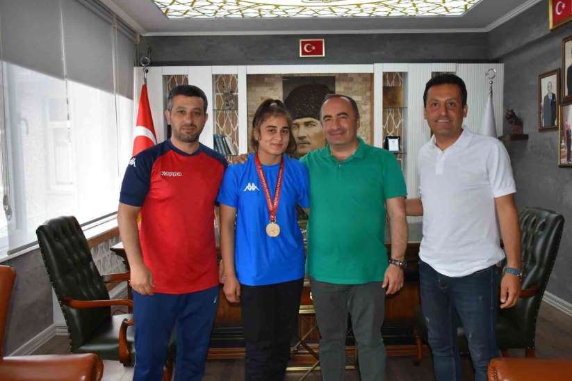 Niğde'de düzenlenen U15 Kadınlar Güreş Türkiye Şampiyonası'nda 58 kiloda Türkiye Şampiyonu olan İskilip Belediye Spor Kulübü sporcusu Özdenur Özmez, Belediye Başkanı Ali Sülük'ü makamında ziyaret etti.