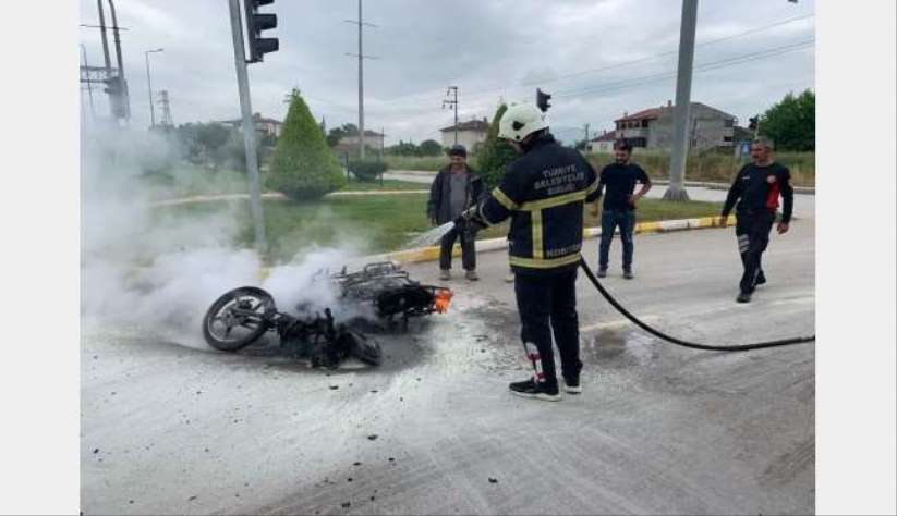 Tokat'tın Erbaa ilçesinde hareket halinde olan bir motosiklet, kendiliğinden alev aldı yangın tüpüyle söndürüldü.
