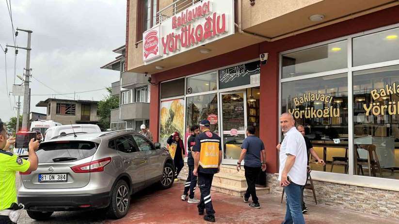 Düzce'de iki aracın çarpıştığı trafik kazasında cip, baklava dükkanının çerçevesine çarparak durdu.